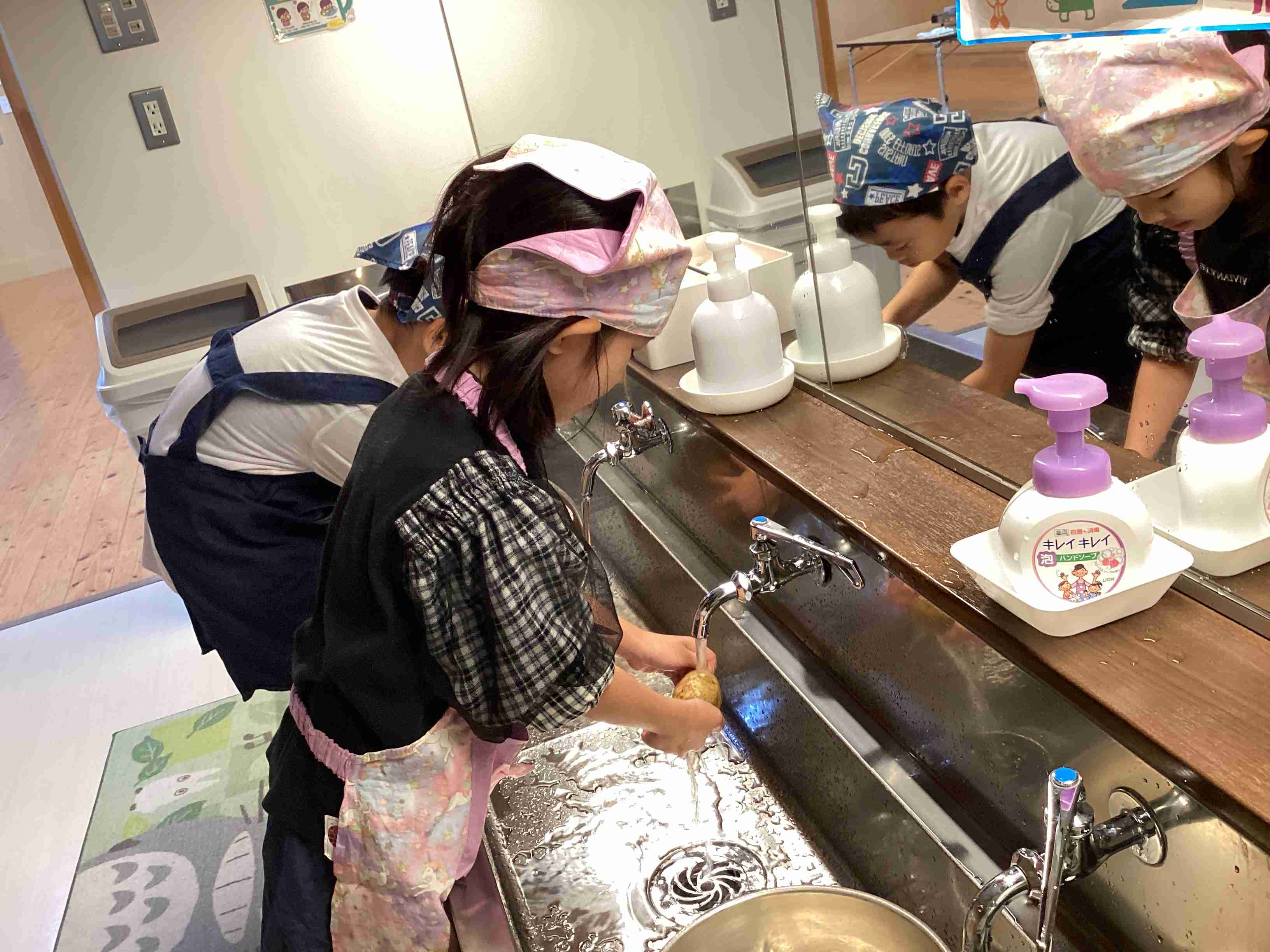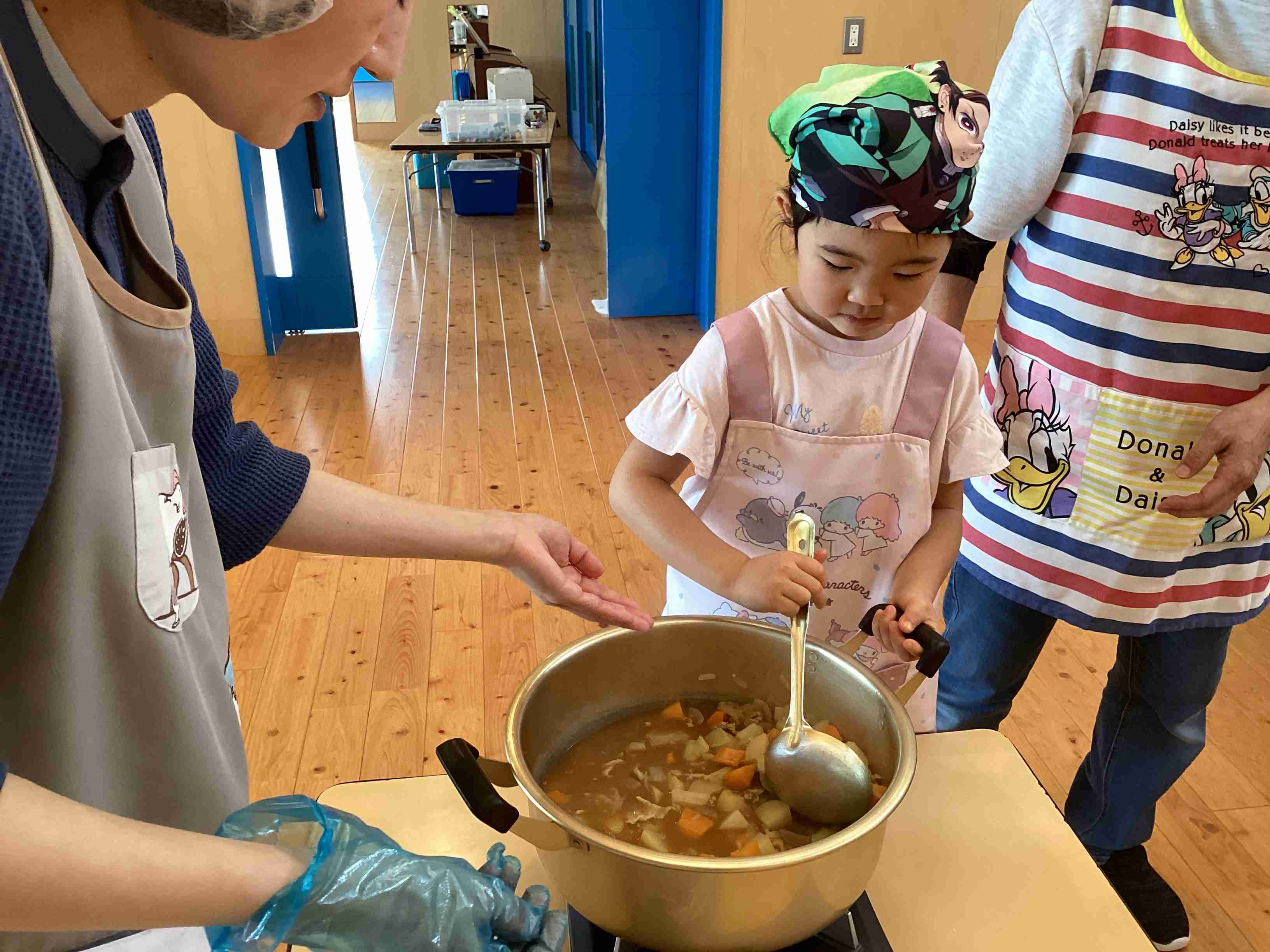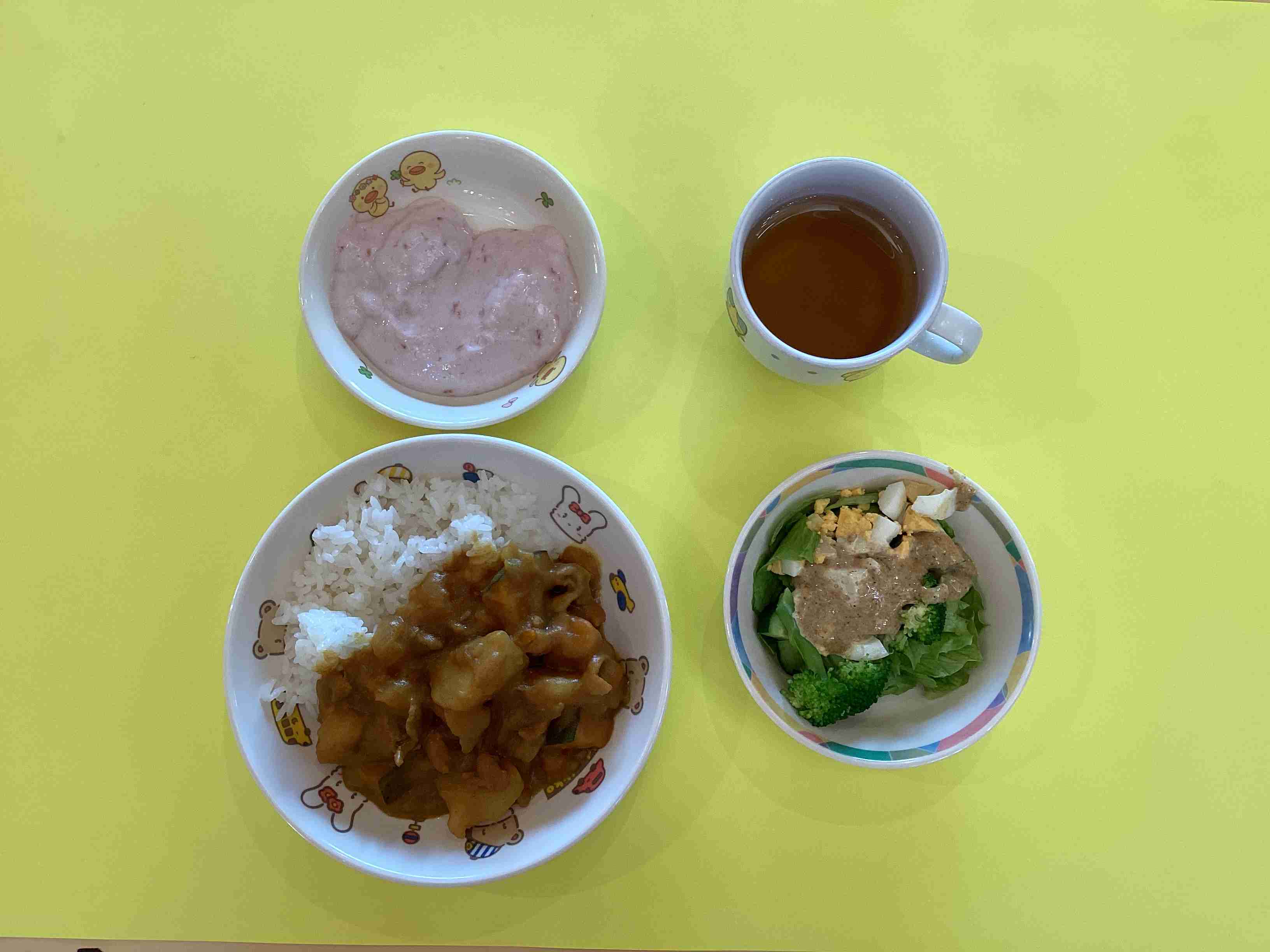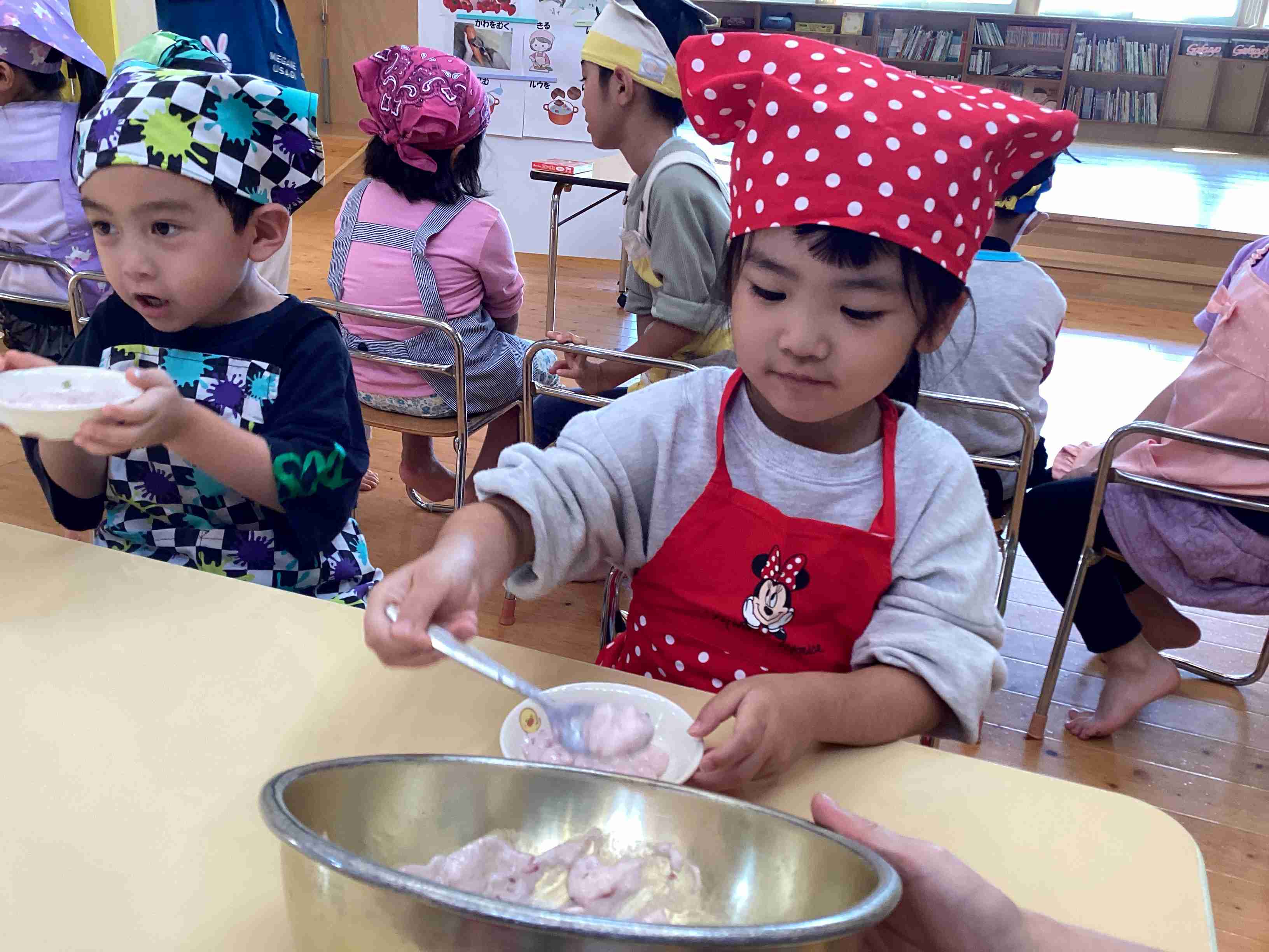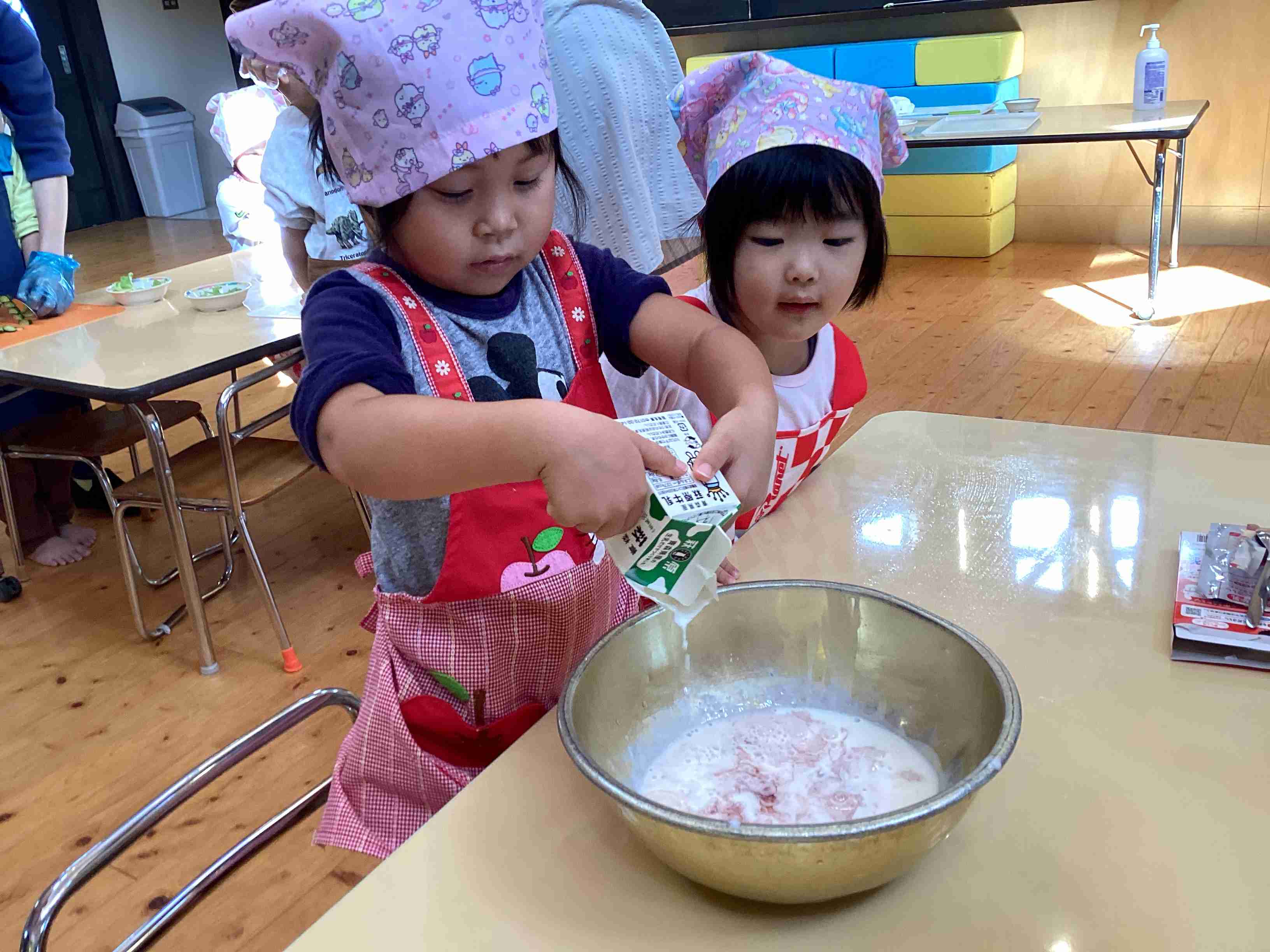 ぱんだ組はサラダ担当・きりん組はフルーチェ担当 みんなでキッキング‼