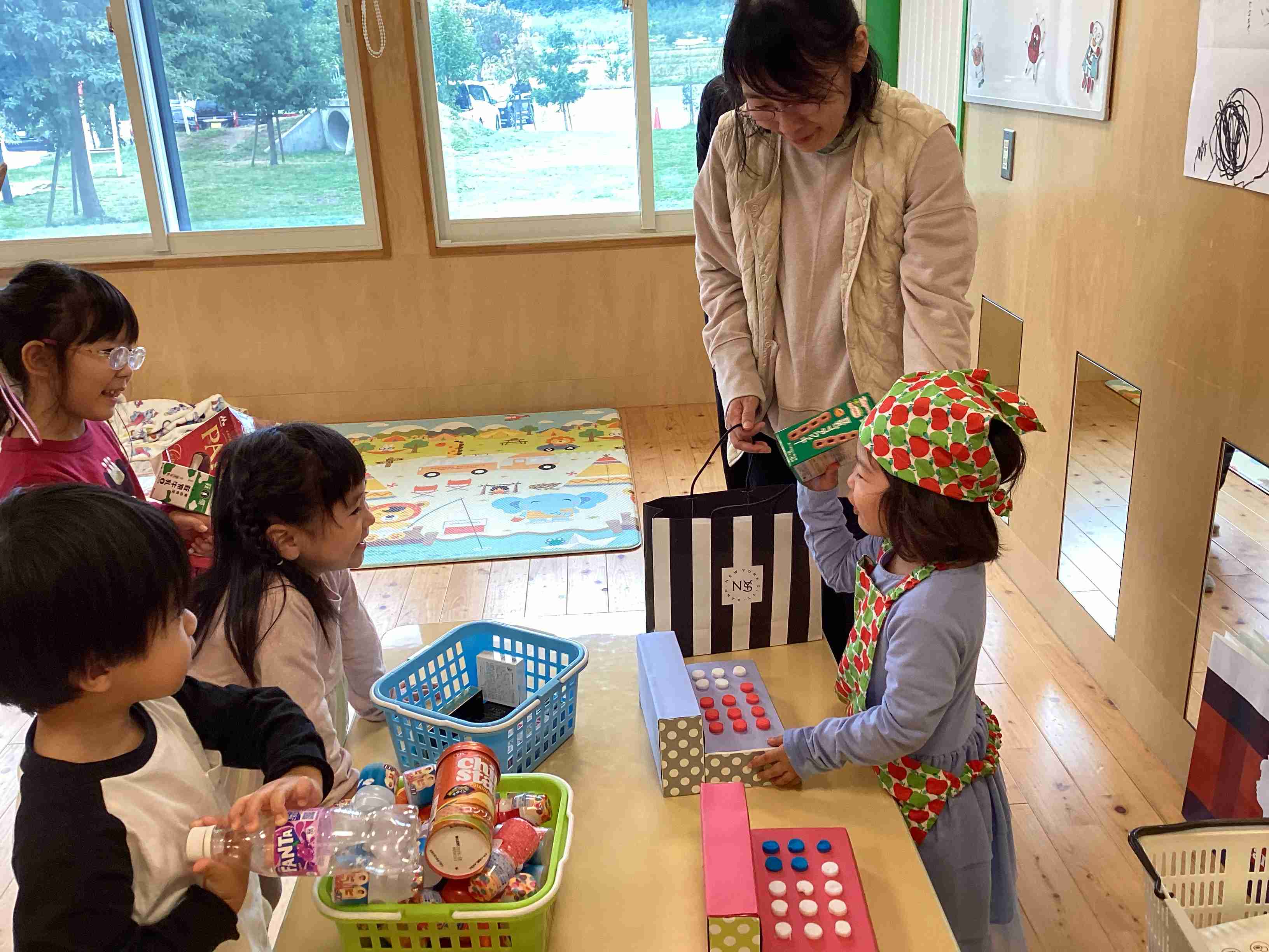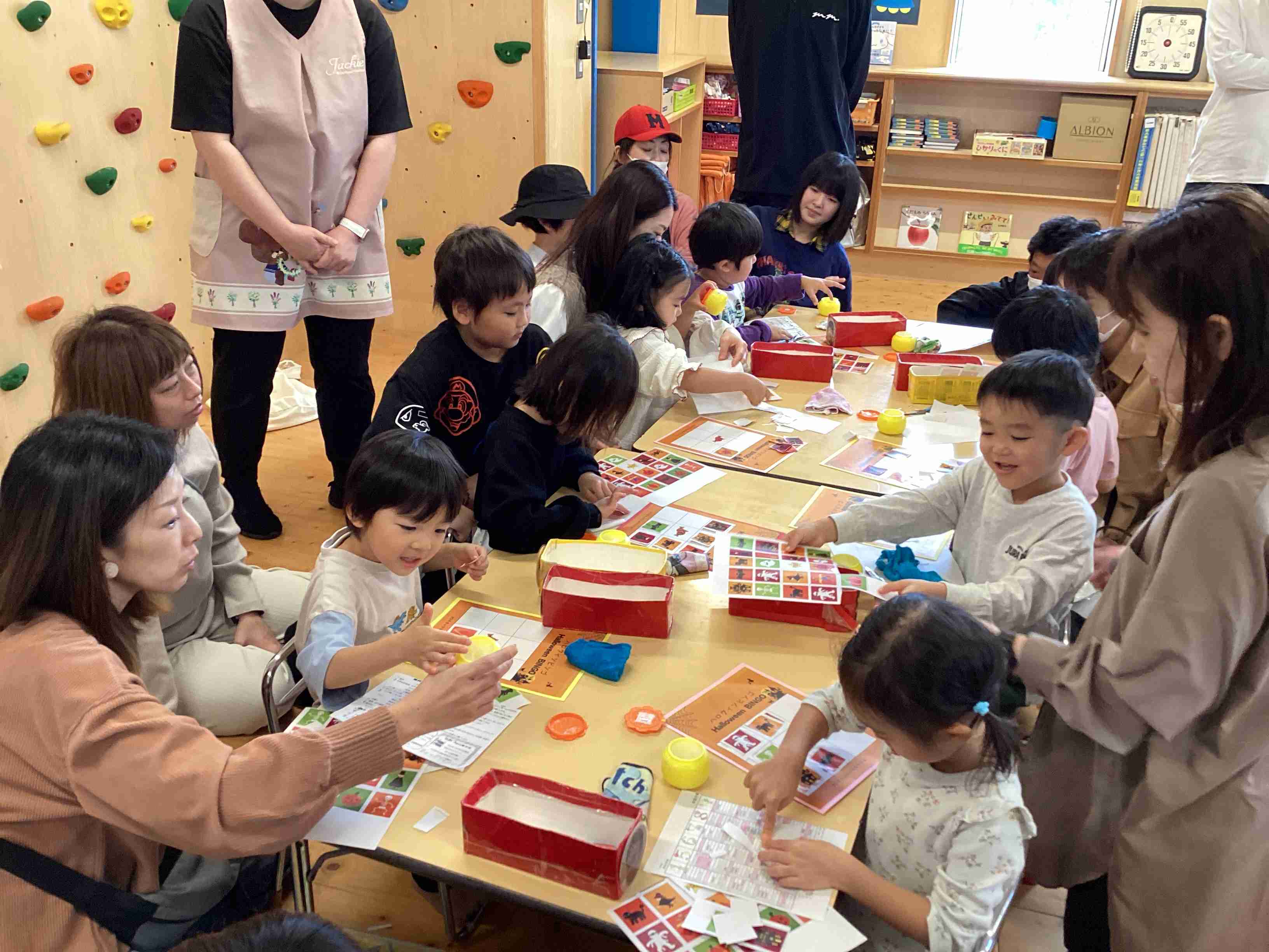 10月11日(土)参観日です。参観の前に保護者を対象に弘前市健康こども部・健康増進課・健康づくり総合推進係・管理栄養士 小山内さんに「幼児食育健康講座」と題してこどもの食事について講義していただきました。とても参考になるお話でした。その後は各クラスでの参観です。ぞう組はげんき先生の「体操教室」です。保護者と一緒に運動遊びを行ないました。家でできる運動遊びをたくさん教えていただきました。ぱんだ・きりん組は「ハロウィン」をテーマにした活動を見てもらいました。未満児組はお買い物ごっこを保護者と一緒に楽しみました。