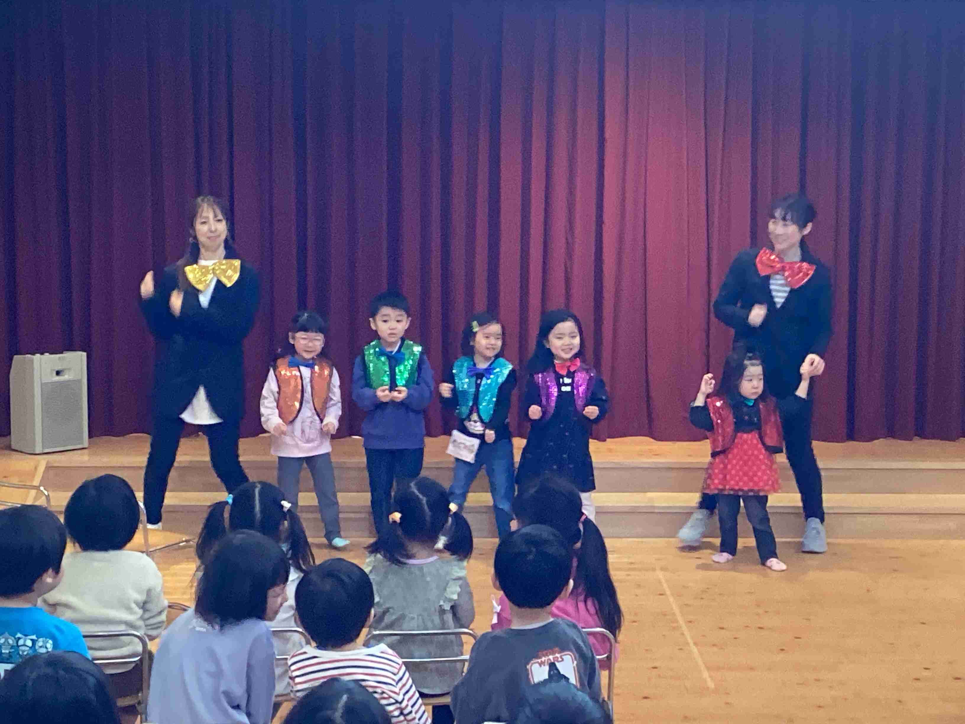 1月17日(土)イオンタウンのイベントに参加したぞう組は遊戯3曲とうたを披露しました。買い物などで利用しているイオンタウンですが、今回は出演者ということでバックヤードにもお邪魔しました。「こんな所もあるんだ」「初めて見た」やや落ち着かない様子で待つこと30分・・・時間になり赤絨毯で披露しました。保護者の方や買い物客の方が見守る中披露しました。華やかな場所での披露でしたので、ぞう組とはいえ視線が色んな所にいってましたね(笑)