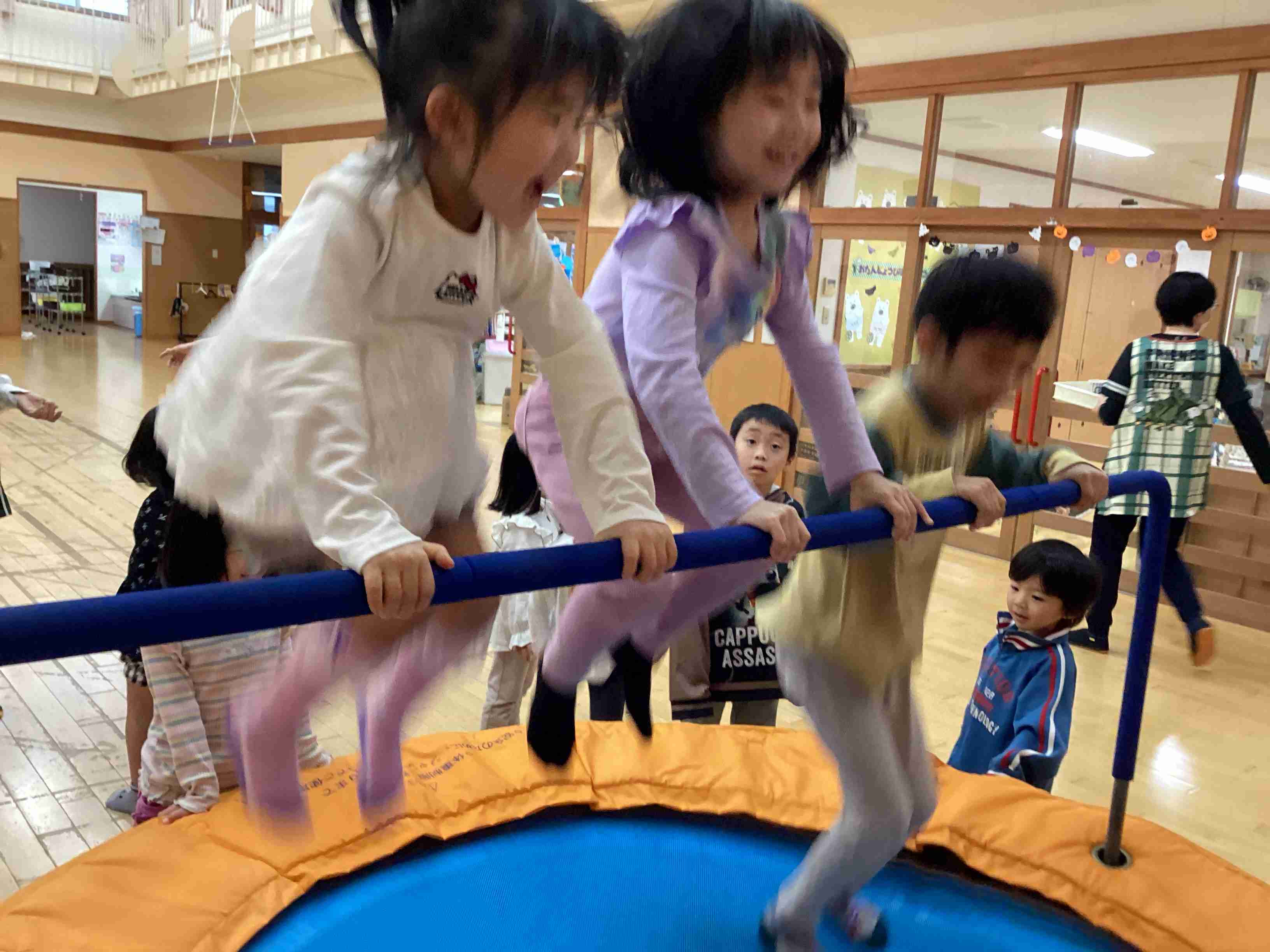 10月18日(土)昨年に続き、今年も真土保育園で「オイリュトミー劇場」を観ました。幻想的な光にワクワクしながらの45分でした。うちの園にはないトランポリンにみんな大熱狂***