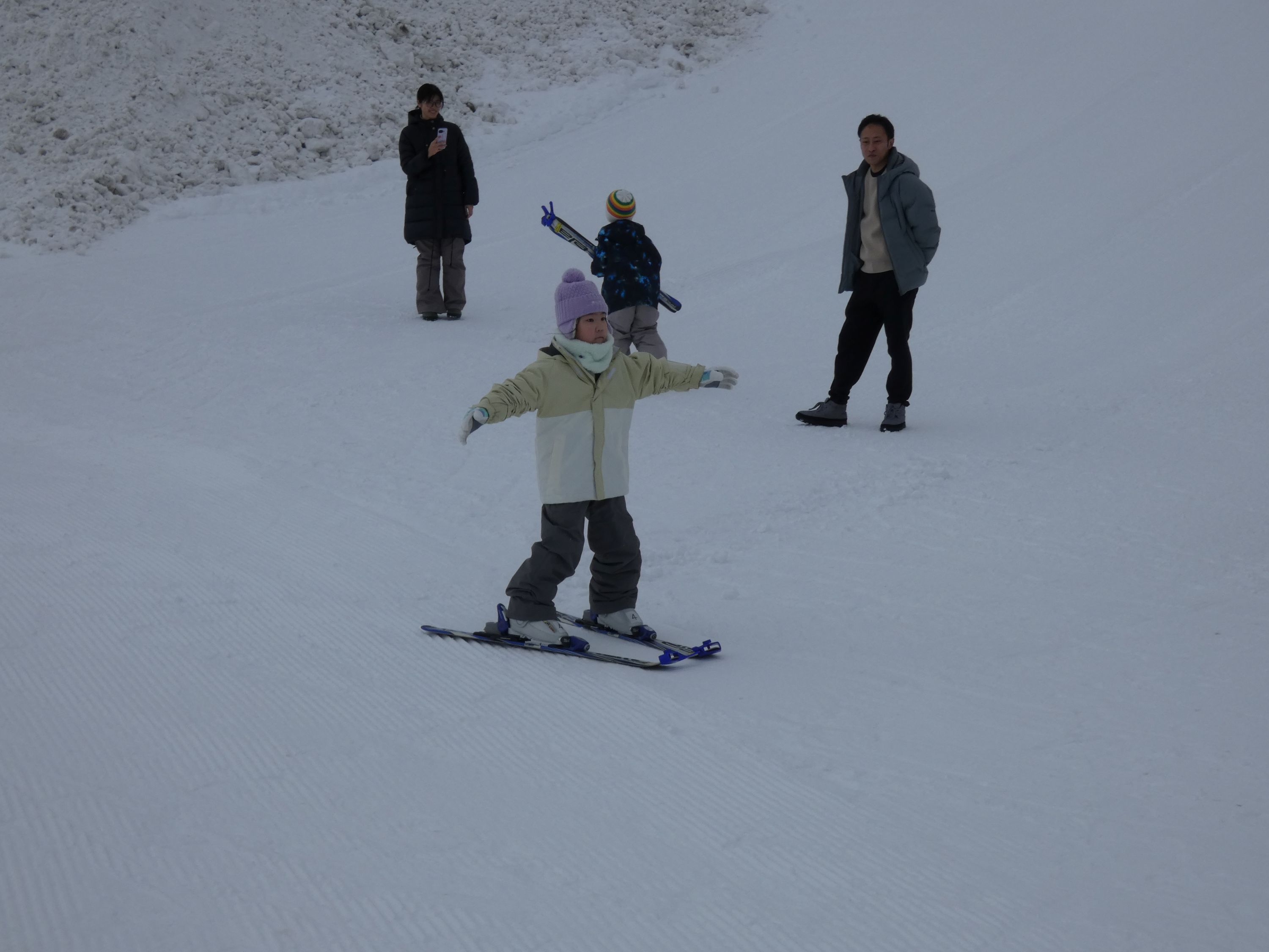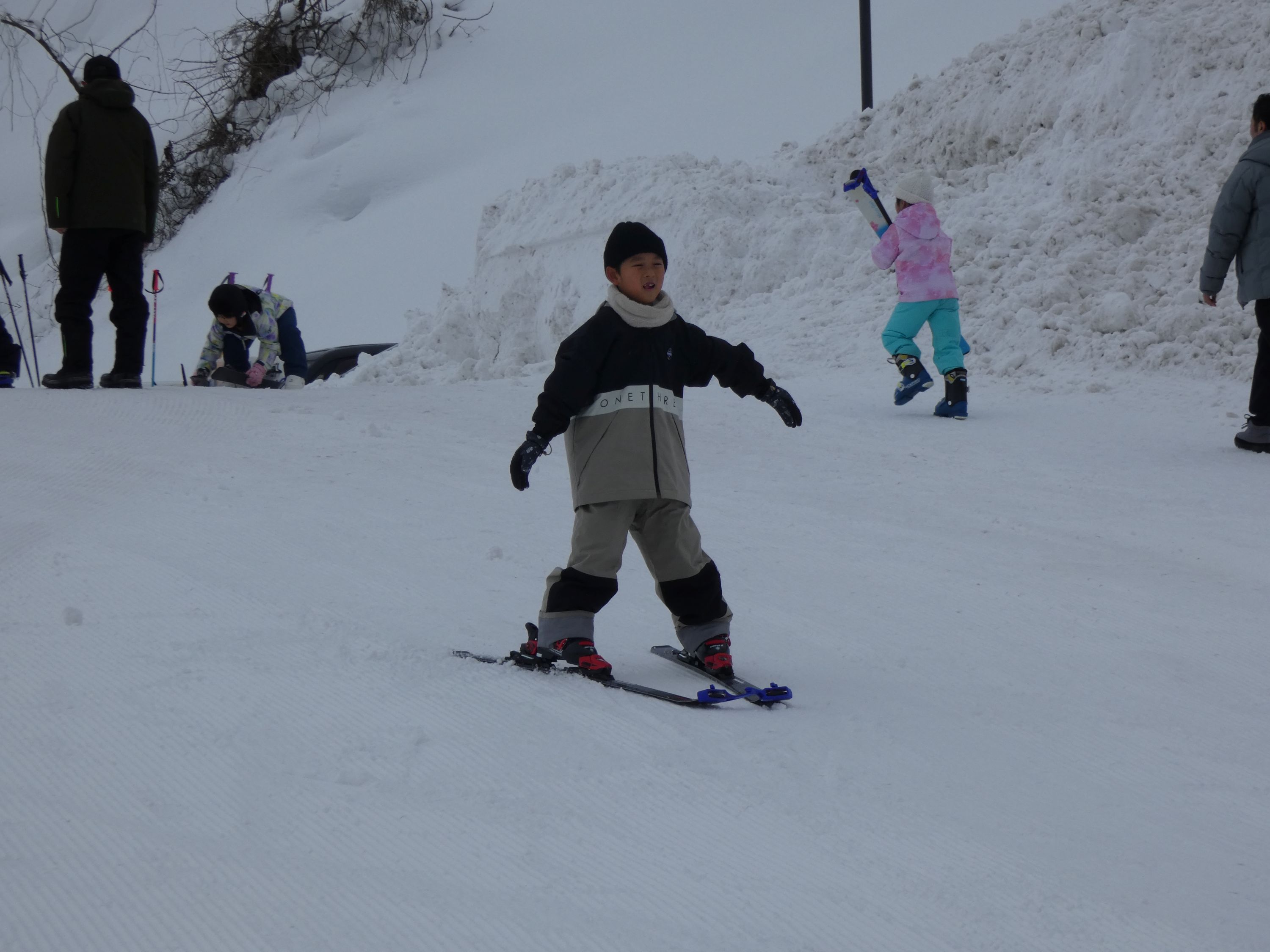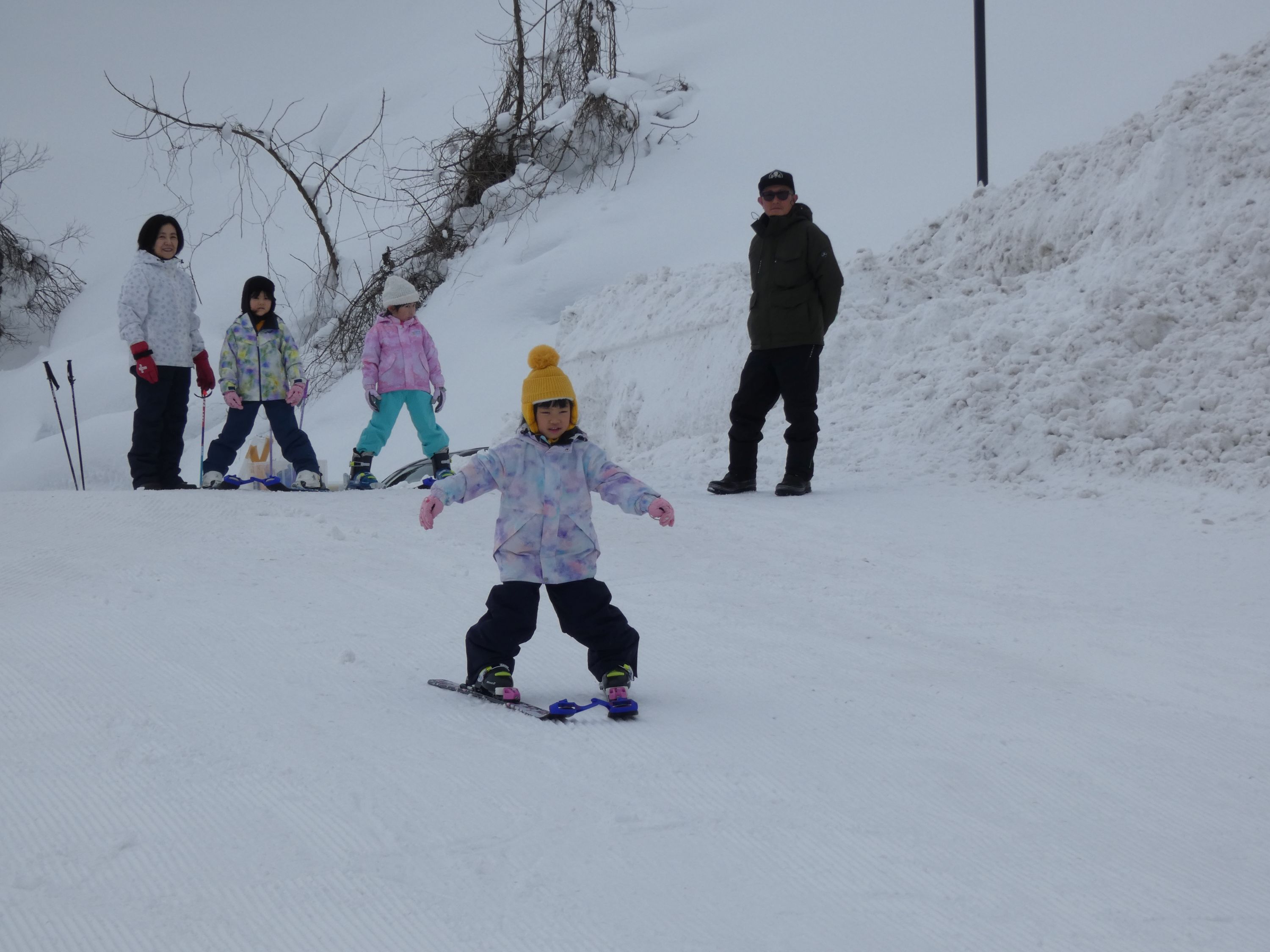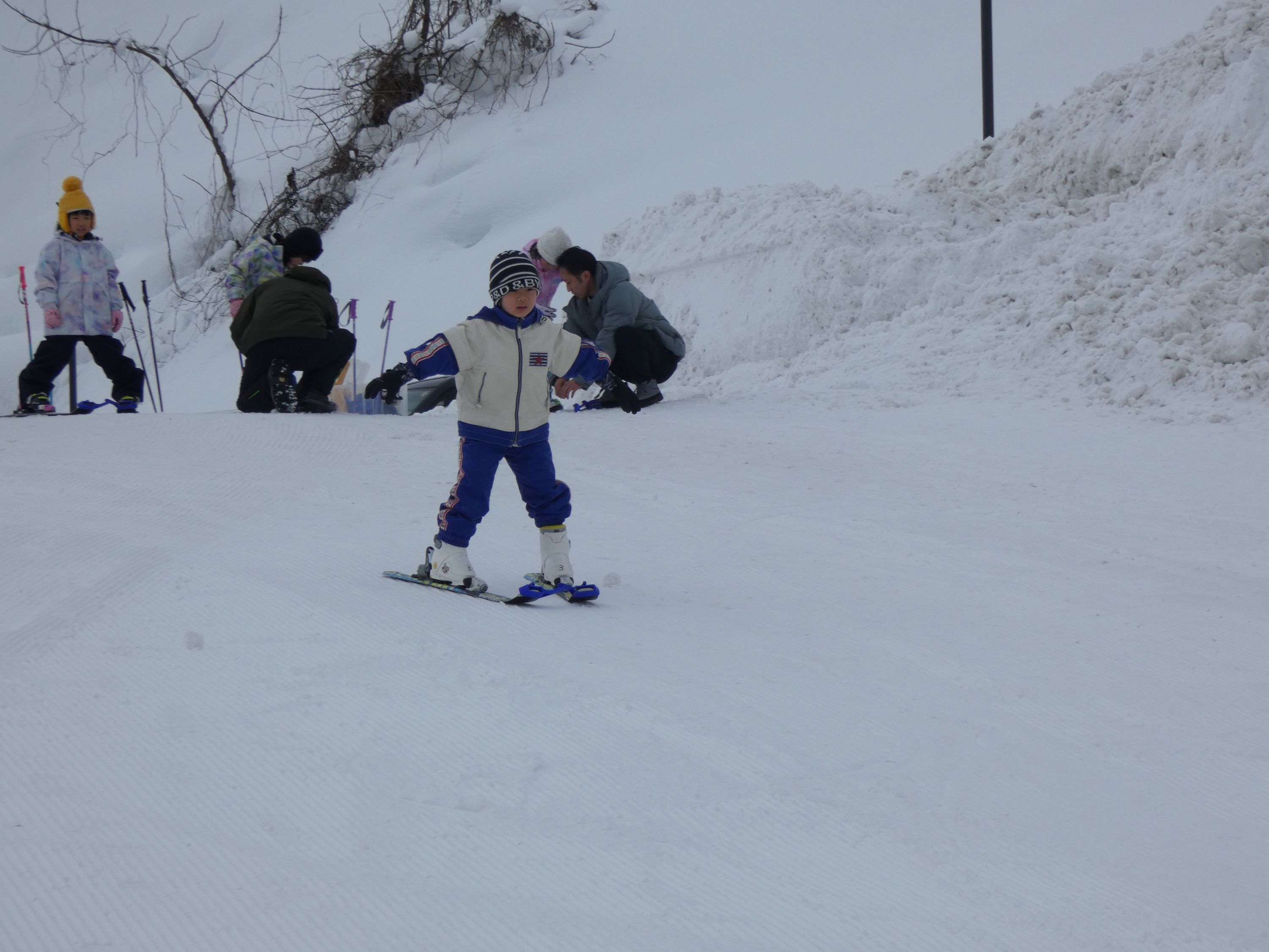 2月4日(水)は年長組さんのスキー教室でした。福祉バスの送迎で近くの「ロマントピアスキー場」にでかけ、相馬スキークラブの播磨さんをはじめたくさんの方にお世話になりました。子どもたちのほとんどは、はじめての子が多く、ドキドキしていたようでしたが、いざスキーを装着すると顔がシャキッとしていました。横一列に並んで緩やかな坂を一人ずつ滑ります。「行きまーす」と声をかけて、ストックなしでスタート!「腰を下げて、ひざをまげて」などアドバイスを聞きながら、上手に滑っていきました。何度も何度も繰り返しましたが、誰一人「疲れた~」と弱音を吐かず時間いっぱい楽しんでいました。子どもたちからは「またやりたい」「今度ママと来たい」など意欲的な言葉がきかれました。4月からは小学生!体験したことを忘れないでね!お世話になった皆様ありがとうございました。おかげさまで楽しい経験をすることができました。