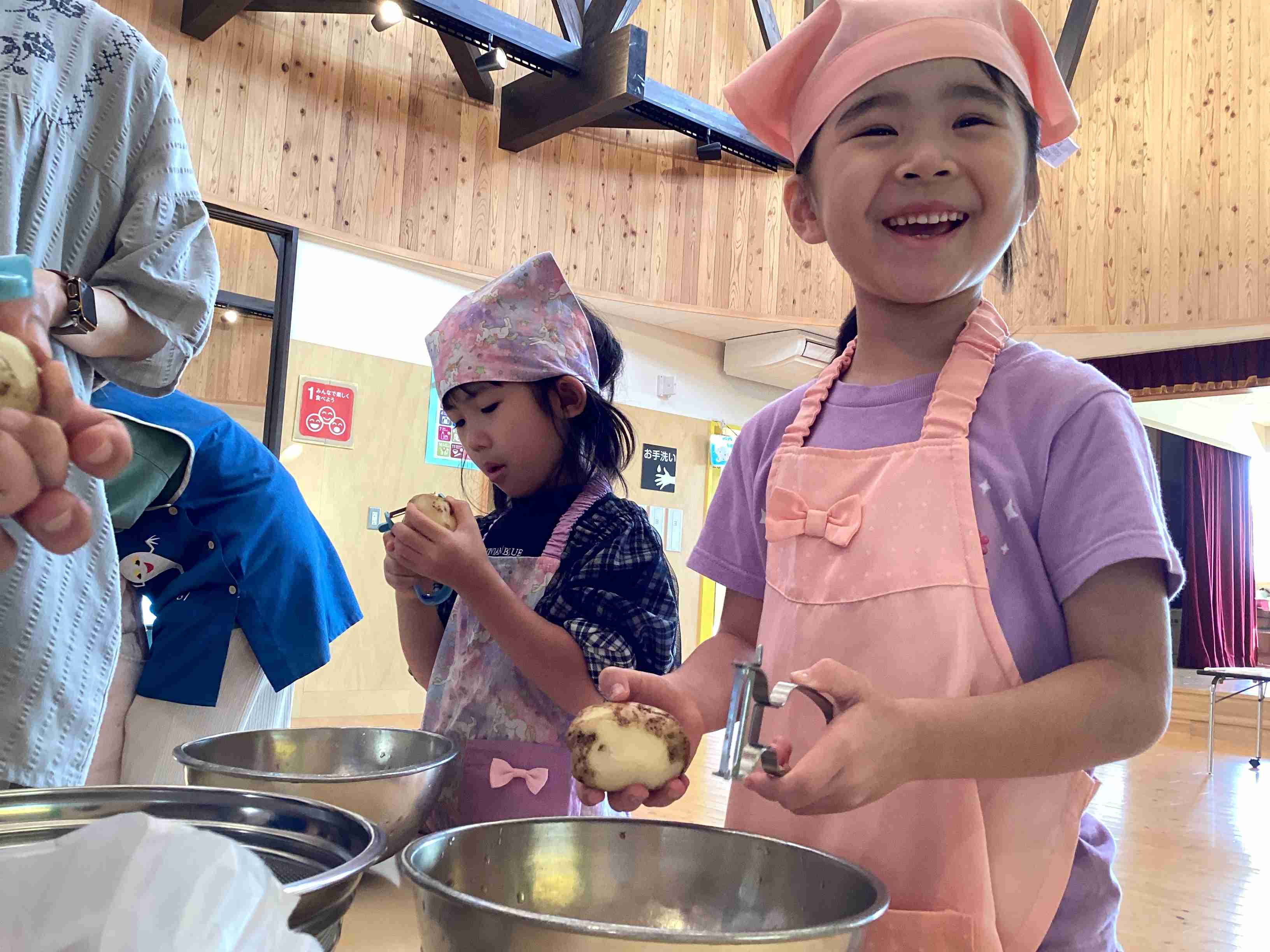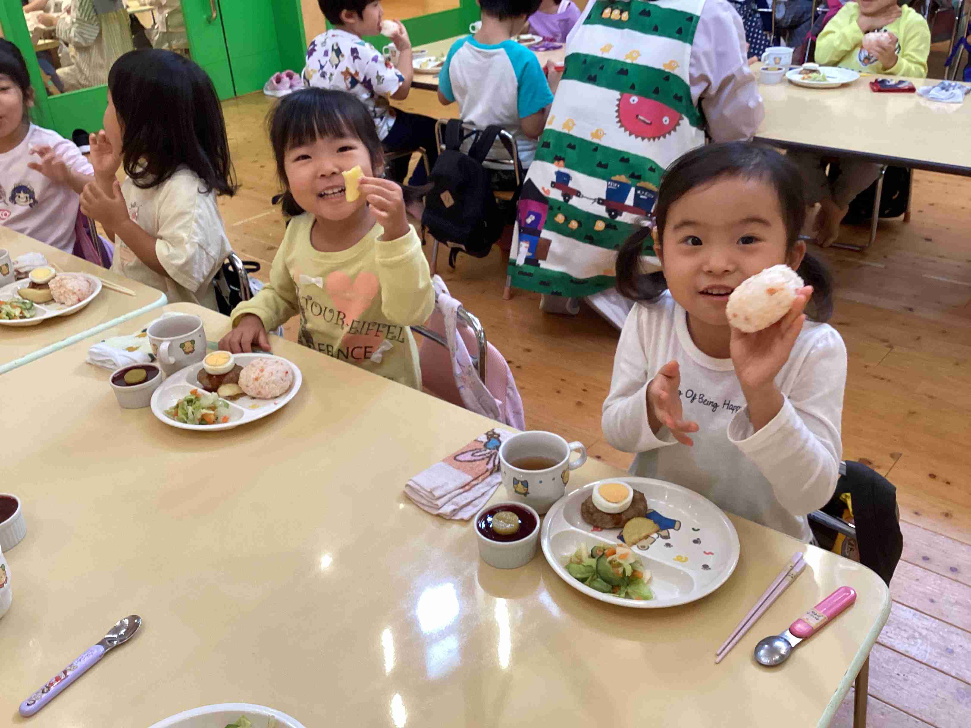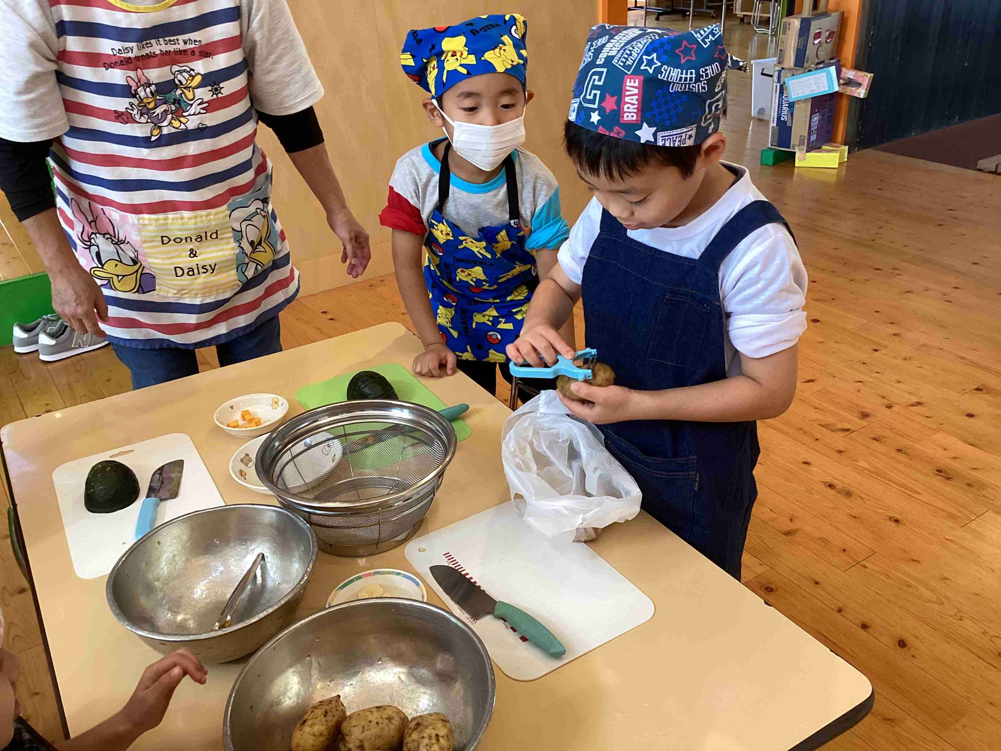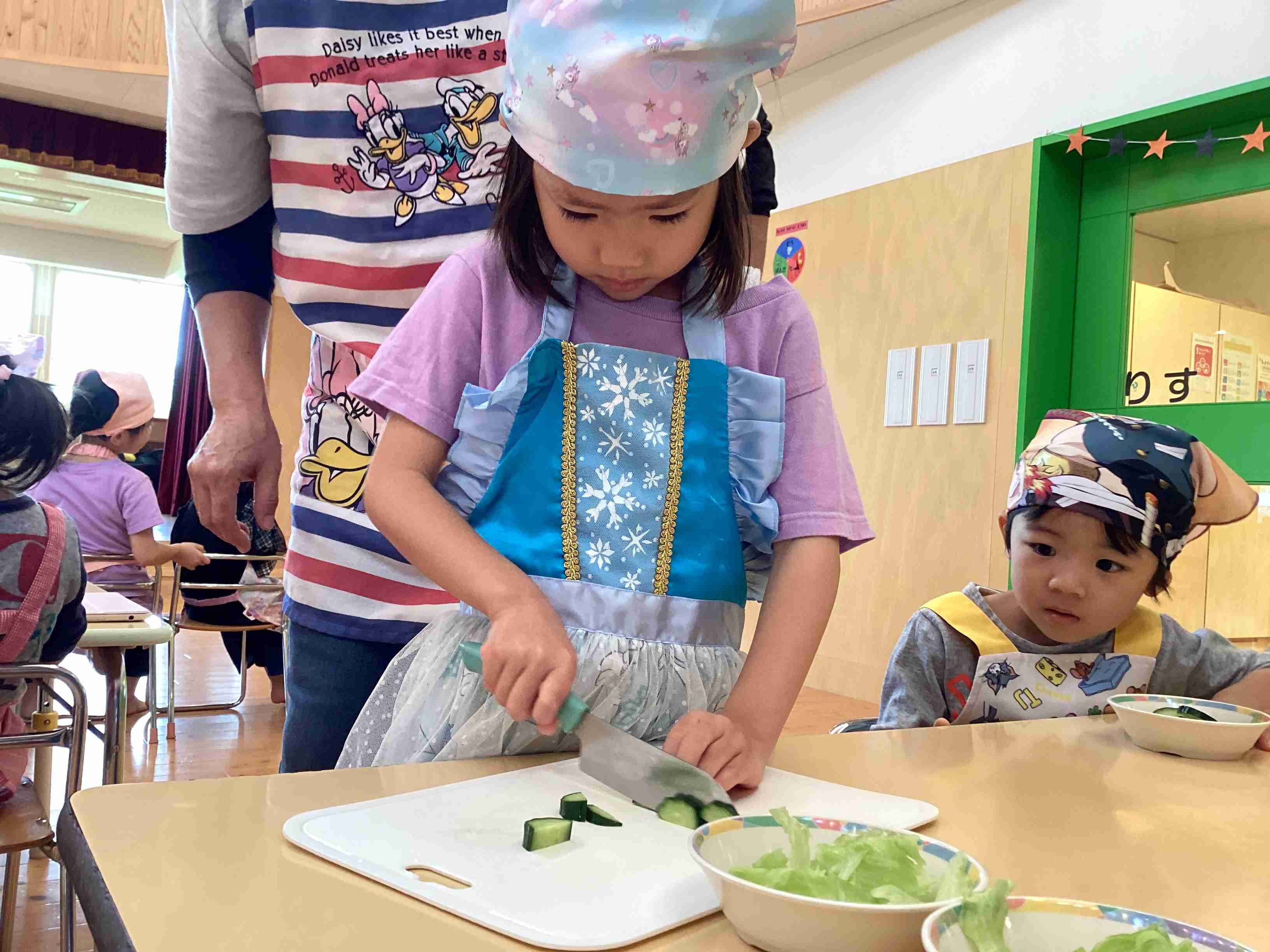 ぱんだ組はサラダ担当・きりん組はフルーチェ担当 みんなでキッキング‼