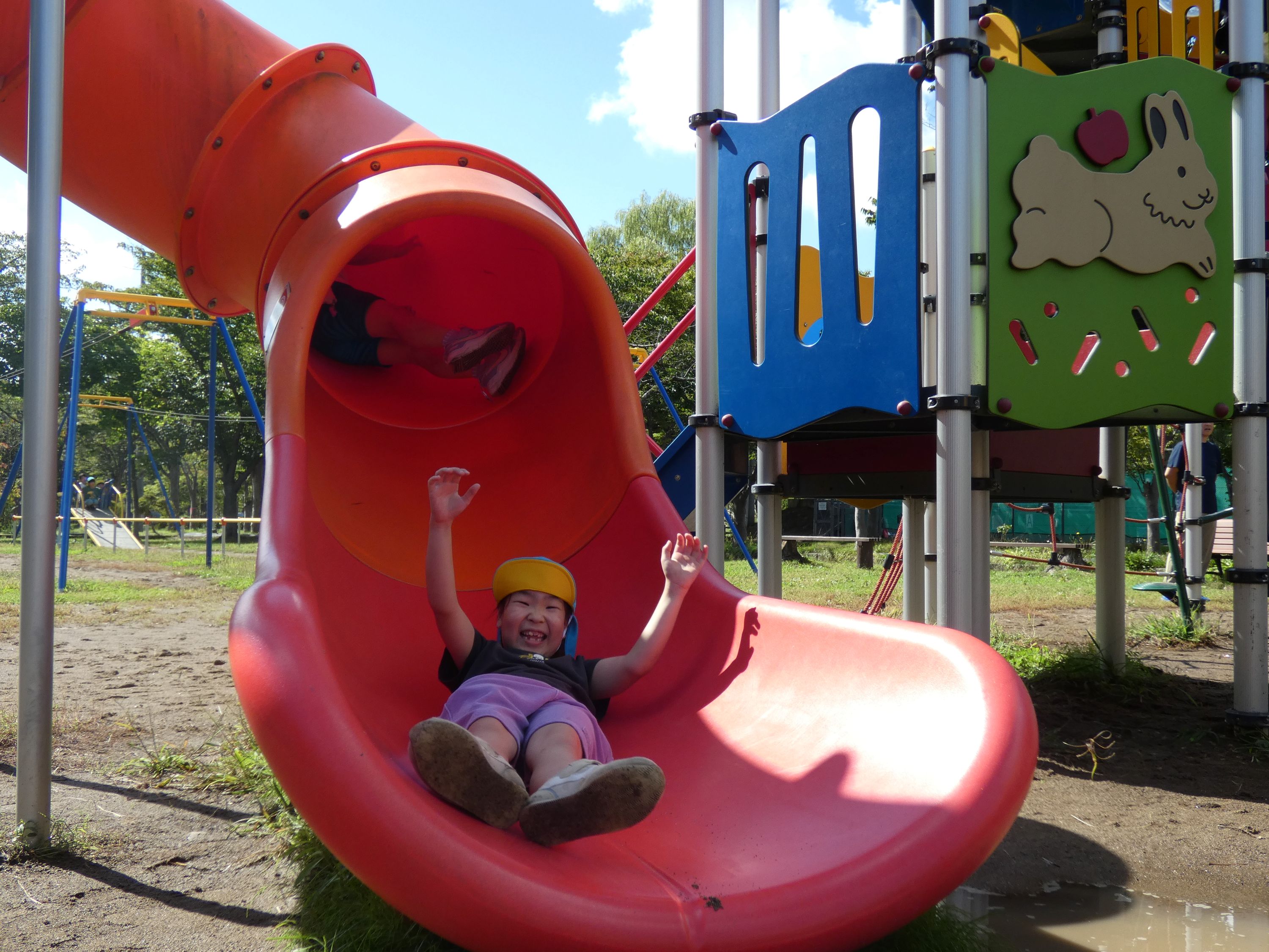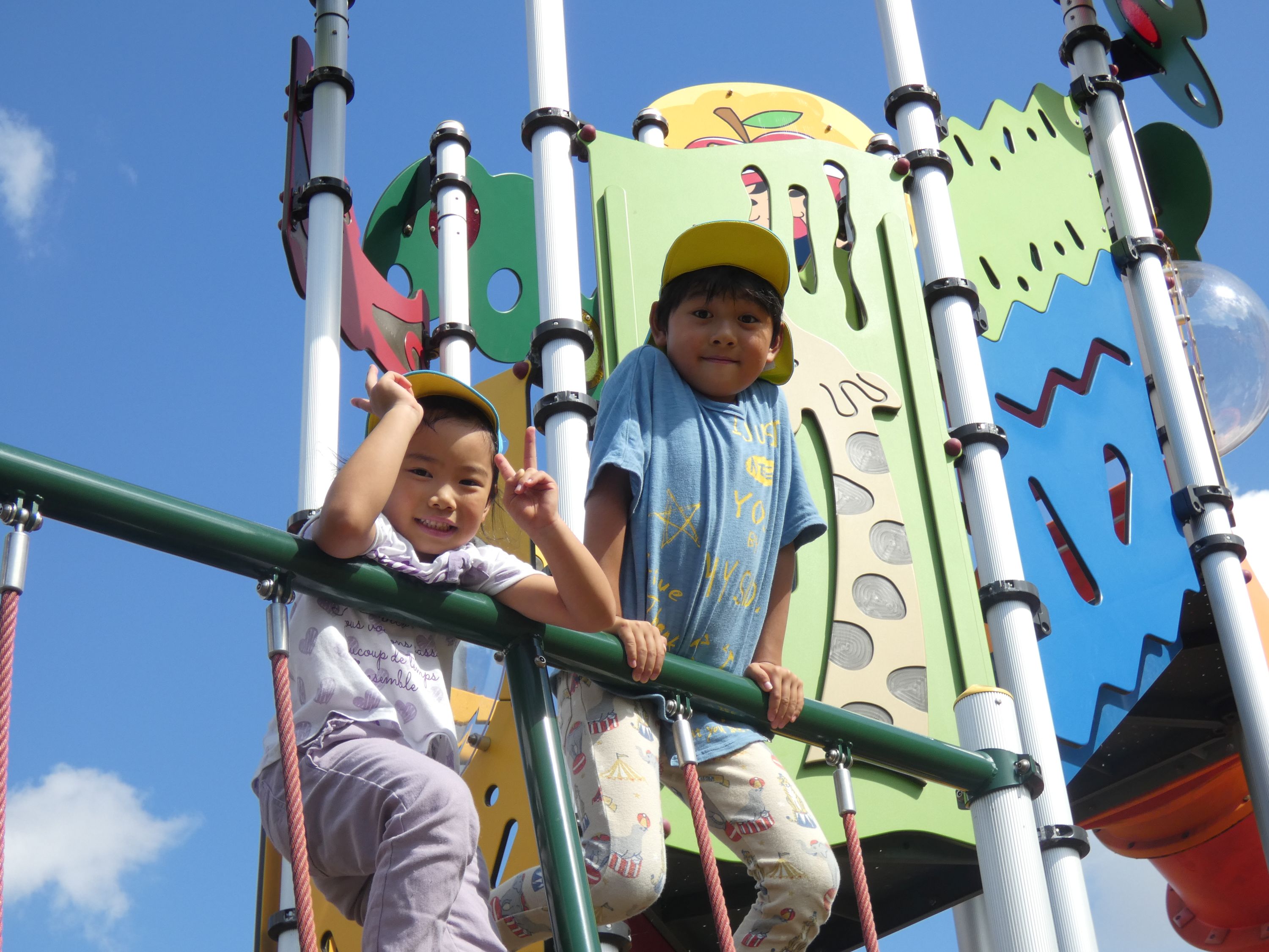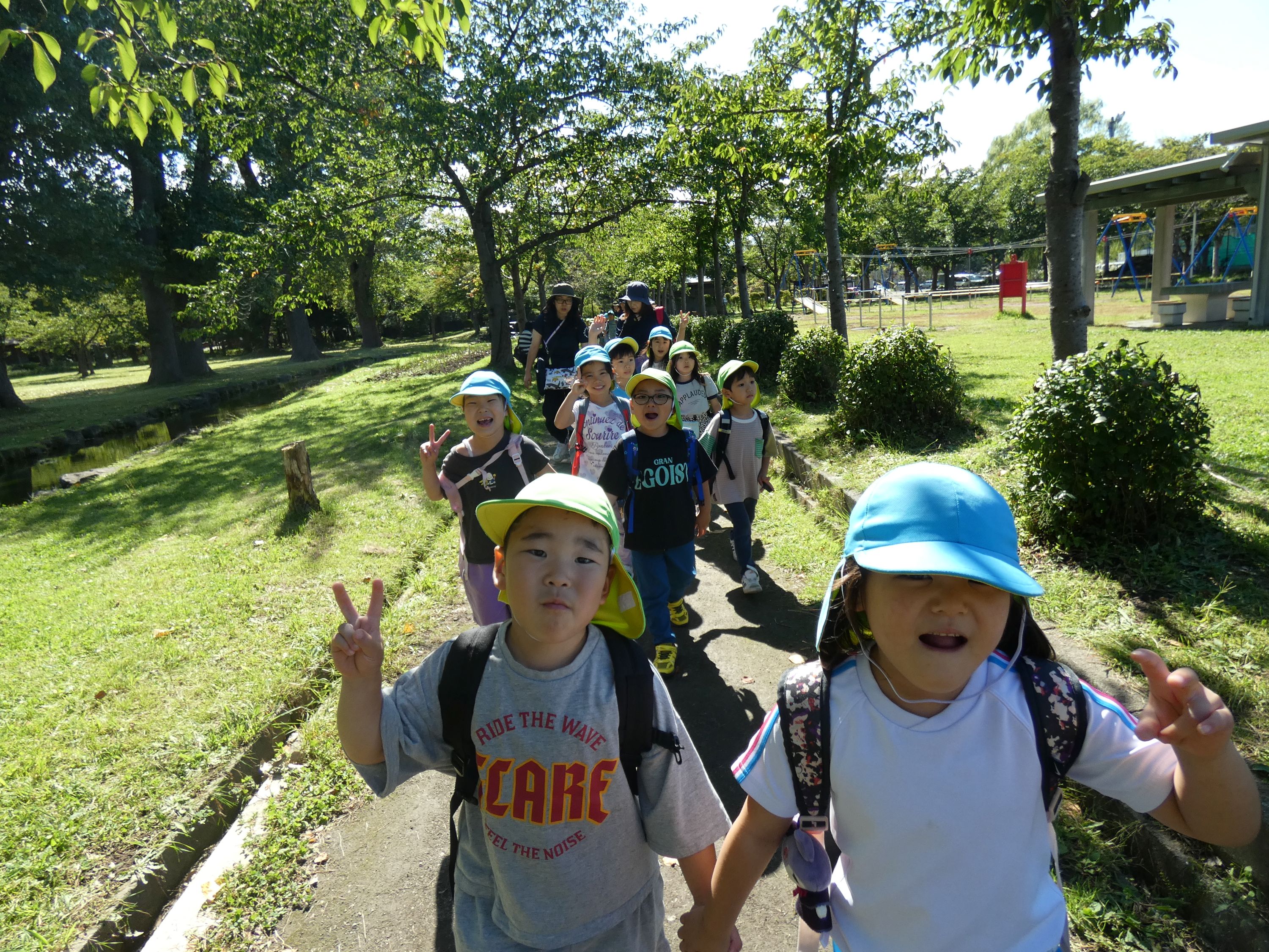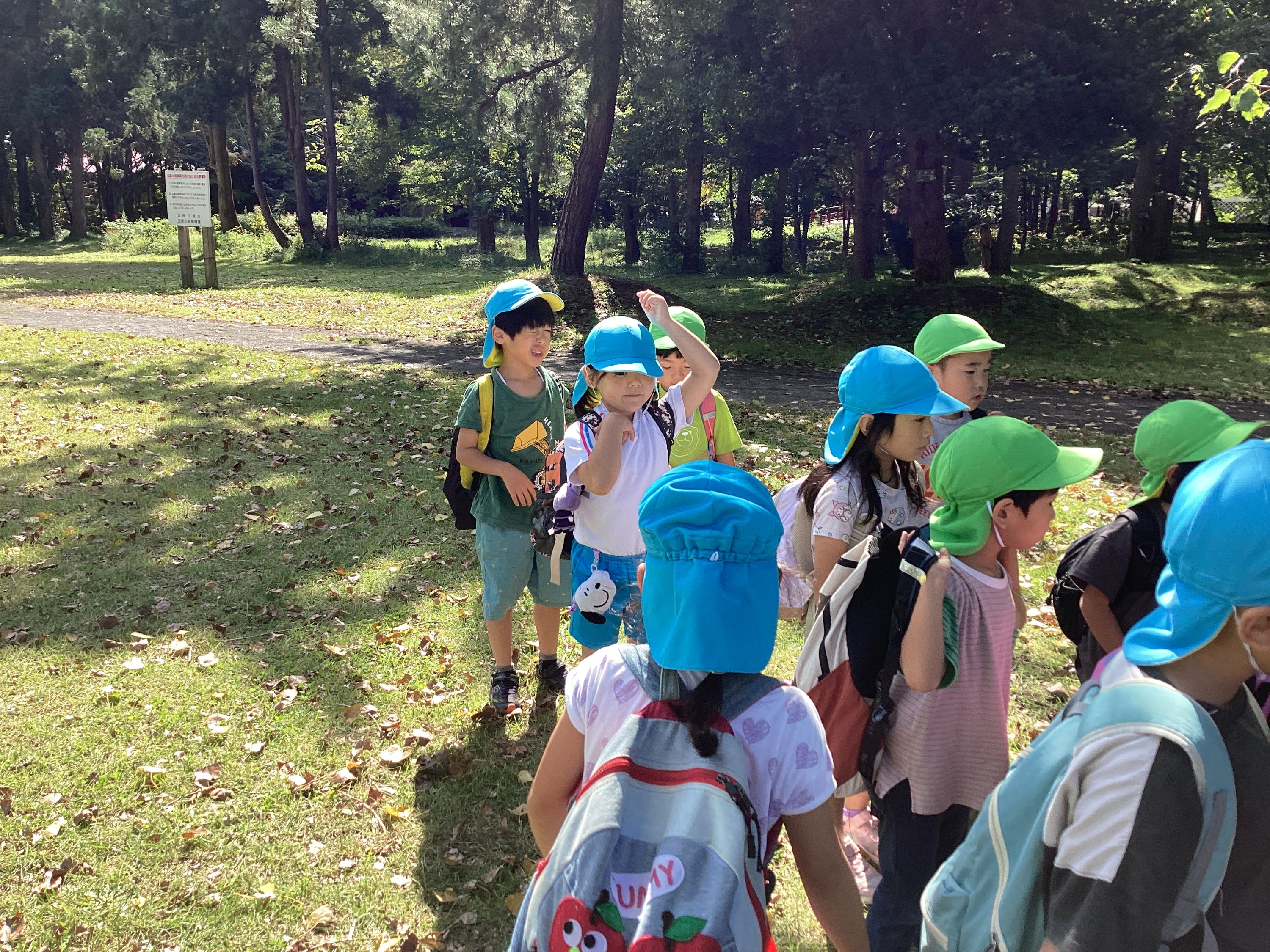 お天気に恵まれた9月30日(火)ぞう組とぱんだ組さんは、五所川原市にある菊が丘運動公園へ遠足に行って来ました。バスの中では、季節のうたを次々うたい、スリーヒントクイズで盛り上がり、あっという間に到着。整備された公園では立派な遊具があり子どもたちの好奇心が全開!着いてすぐ、集合写真を撮り「さあ!遊びましょう~」の合図で目当ての遊具にすばやく並んでいました。近くには小川が流れていてよく見ると、ザリガニがいました。たくさん遊んだ後は愛情たっぷりのお弁当タイム。友達と見せ合いながら、おいしそうに食べていました。お弁当の後は、おやつタイム!楽しすぎてあっという間に時間になりましたが、「またお家の人と来ようね」と帰路に、、、たくさん身体を動かしたので、帰りのバスでは疲れて熟睡する子もいました。遠足楽しかったね。