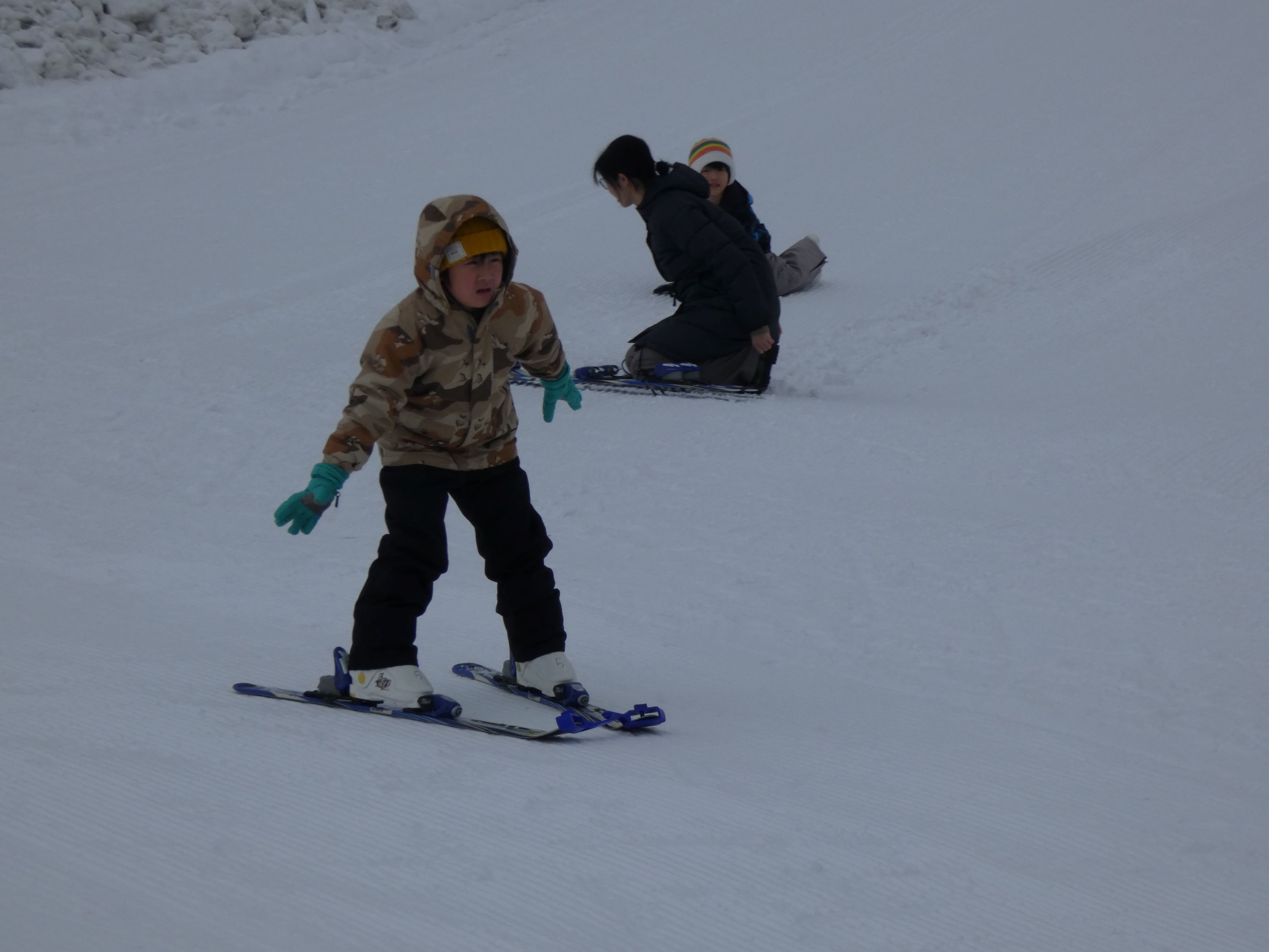 2月4日(水)は年長組さんのスキー教室でした。福祉バスの送迎で近くの「ロマントピアスキー場」にでかけ、相馬スキークラブの播磨さんをはじめたくさんの方にお世話になりました。子どもたちのほとんどは、はじめての子が多く、ドキドキしていたようでしたが、いざスキーを装着すると顔がシャキッとしていました。横一列に並んで緩やかな坂を一人ずつ滑ります。「行きまーす」と声をかけて、ストックなしでスタート!「腰を下げて、ひざをまげて」などアドバイスを聞きながら、上手に滑っていきました。何度も何度も繰り返しましたが、誰一人「疲れた~」と弱音を吐かず時間いっぱい楽しんでいました。子どもたちからは「またやりたい」「今度ママと来たい」など意欲的な言葉がきかれました。4月からは小学生!体験したことを忘れないでね!お世話になった皆様ありがとうございました。おかげさまで楽しい経験をすることができました。