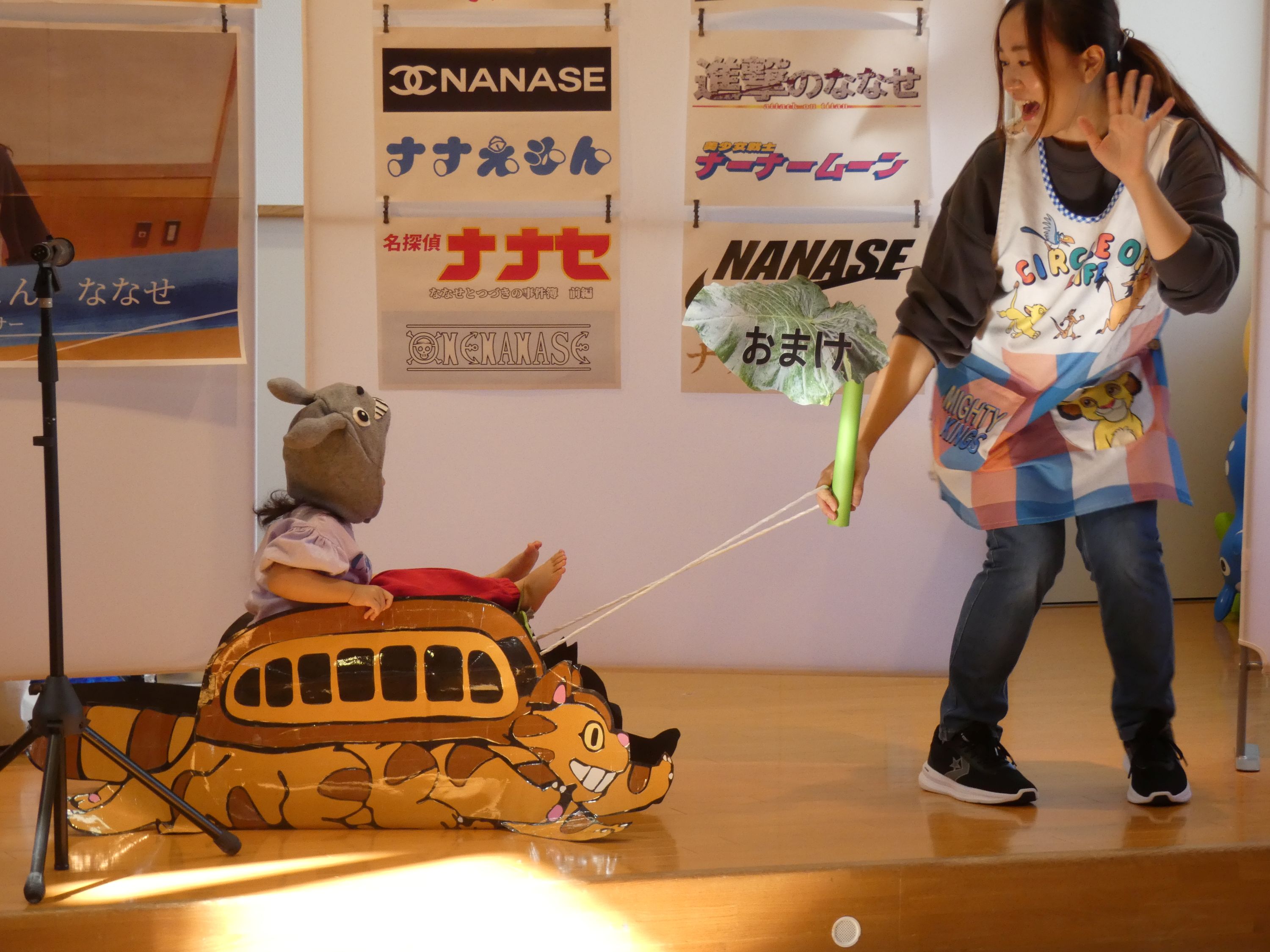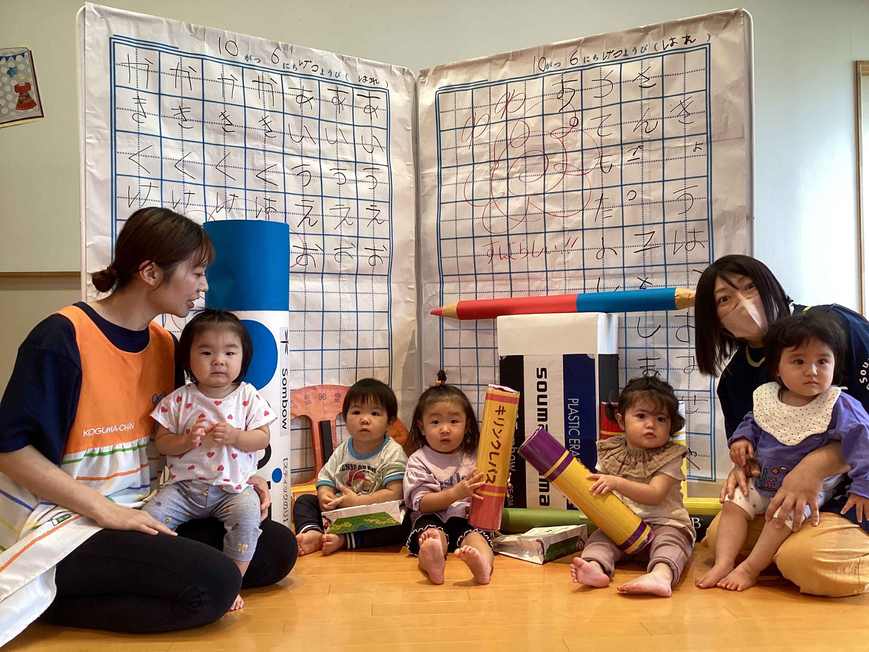 7月19日(土)は相馬こども園に劇団弘演さんが来てくれました。演目は「おこんじょうるり」‼この日は支援センターを利用している親子の参加もあり、遊戯室は始まる前から少し緊張気味。始まりの合図ですぐさま劇の中に引き込まれた様子のこどもたち。不思議な浄瑠璃のセリフに耳を傾け、おばあさんが襲われる場面では「やっちゃった~」と思わず声が出る子もいました。クライマックスでは、感極まった様子で涙をポロポロ流している子もいて、とても感動的でした。最後は皆さんと記念写真 「はい!ポーズ!」間近で演劇を鑑賞するとてもいい機会になりました。劇団弘演さん!ありがとうございました。