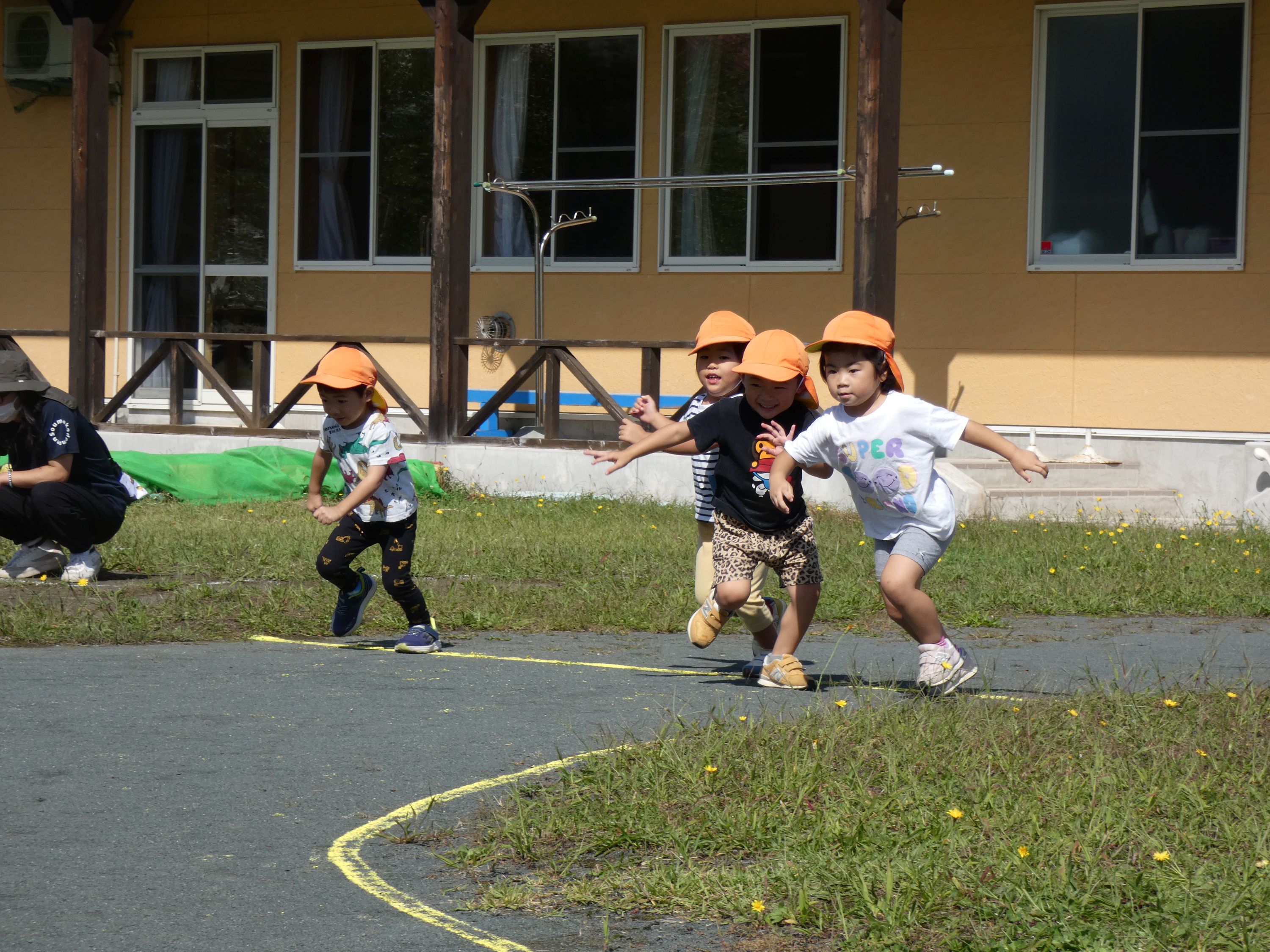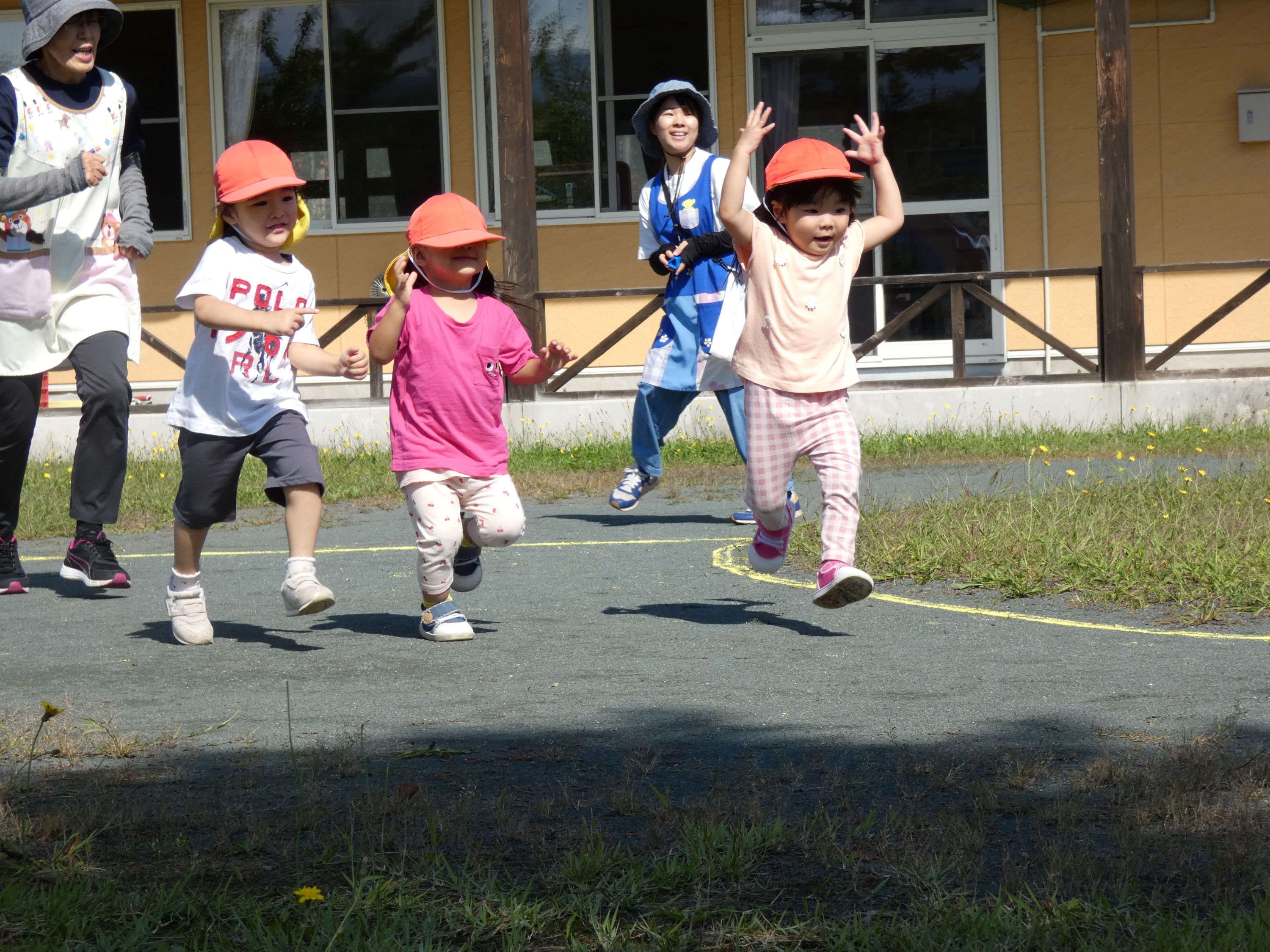 秋晴れの9月26日は「マラソン大会」でした。こあら組さんから参加し、一番小さいクラスのりす組は応援をがんばってくれました。子どもたちみんなで元気に体操をしてウオーミングアップ!スタートはこあら組さんから~「最後まであきらめないで、走ります」を合言葉にどのクラスも一生懸命に走っていました。お仕事の合間に応援に駆けつけて下さった保護者の皆様ありがとうございました。これからも戸外遊びやマラソン、お散歩など自然を感じながら体力づくりに取り組んでいきたいと思います。