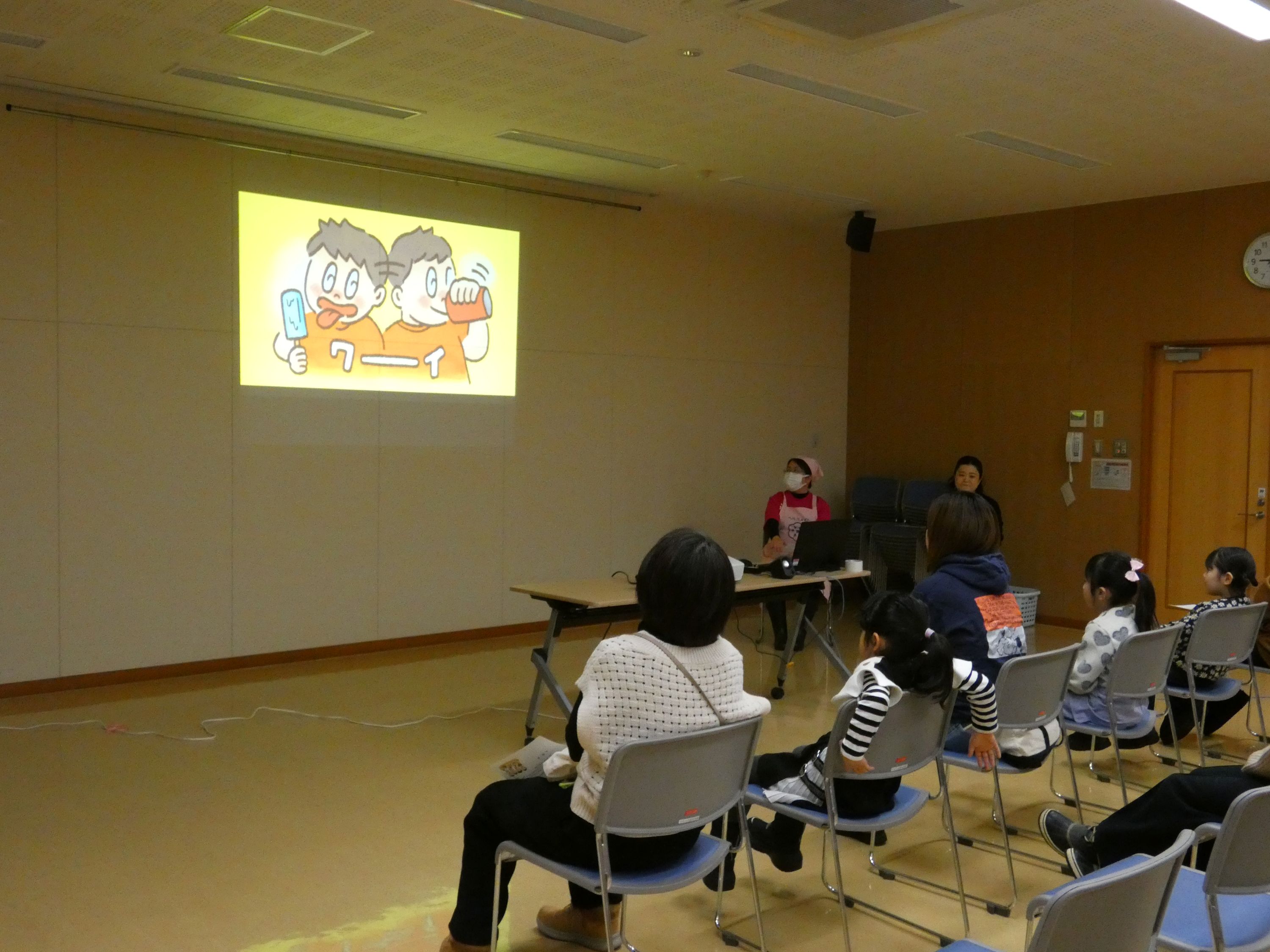 今回の食育集会はハロウィンにちなみ、テーマは「かぼちゃ」たくさんの栄養が含まれ、からだにいい事を学びました。そして、給食のデザートのかぼちゃプリンにチョコペンで目や口をつけたマシュマロをトッピングしました。様々な顔ができ、いつもより元気に「いただきます~」していました。